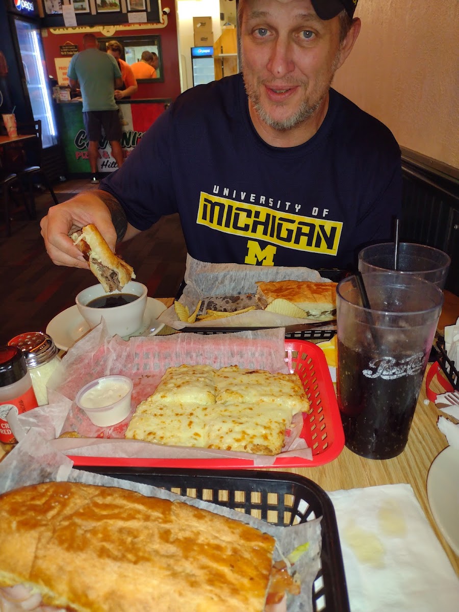This was our first time trying Cavonis and I was pleasantly surprised. I did not realize how large the grinders were! I ordered a full and had more than enough for two meals! The prices were not bad at all!! Very reasonable to take a family out for lunch or dinner. We just happened to come in and then the places loaded up with tables. The service was great, the food was hot and delicious, and we will be back